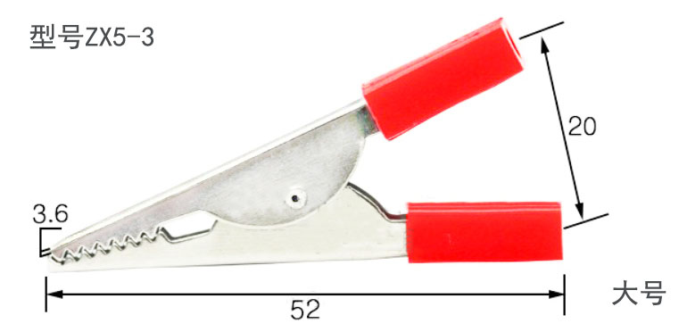 鳄鱼夹在电测量领域一般仅用来测量电压,在测量要求不是太高的情况下,也可以临时测量电流。当用鳄鱼夹测量电流时,要特别注意测量电流的大小,因为鳄鱼夹钳口呈锯齿状, 其夹持力与被测体材料性质,接触面与被测体形状的啮合程度,都关系到鳄鱼夹承载电流的能力。上述鳄鱼夹对电流承载能力的标称,是在典型 情况下按最大电流的60%选取的数值:我们以10mm开口的鳄鱼夹为例:夹在一根圆柱上(如螺杆)和夹在一丛测试线上其过电流能力差约3倍。 夹持在直径4mm圆柱上可承载20A电流,夹持在8mm圆柱上约为10A,夹持在6平方毫米的一丛0.1丝径的祼铜线上,承载能力可达40A,故 综合考虑10mm开口鳄鱼夹最常用的现场环境,标定其承载能力为10A。所以用户可以按照自已的使用环境,优先不同开口尺寸的鳄鱼夹。